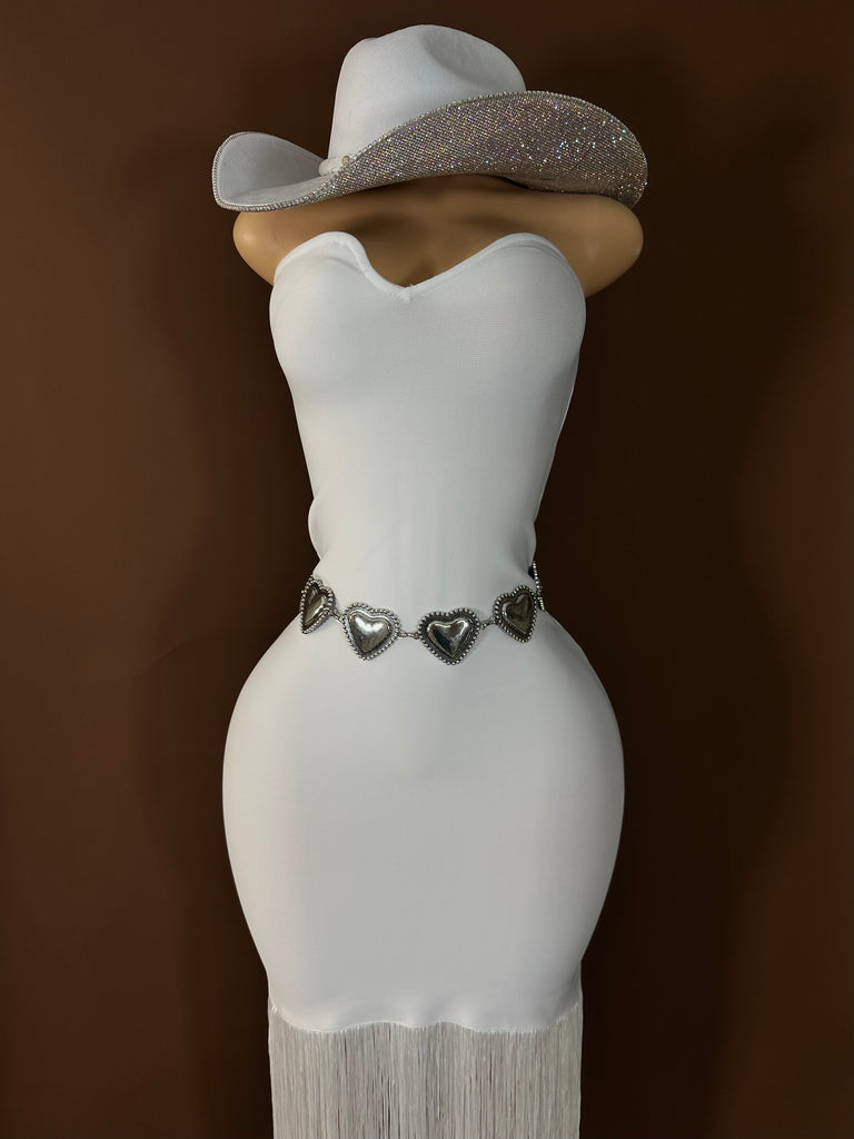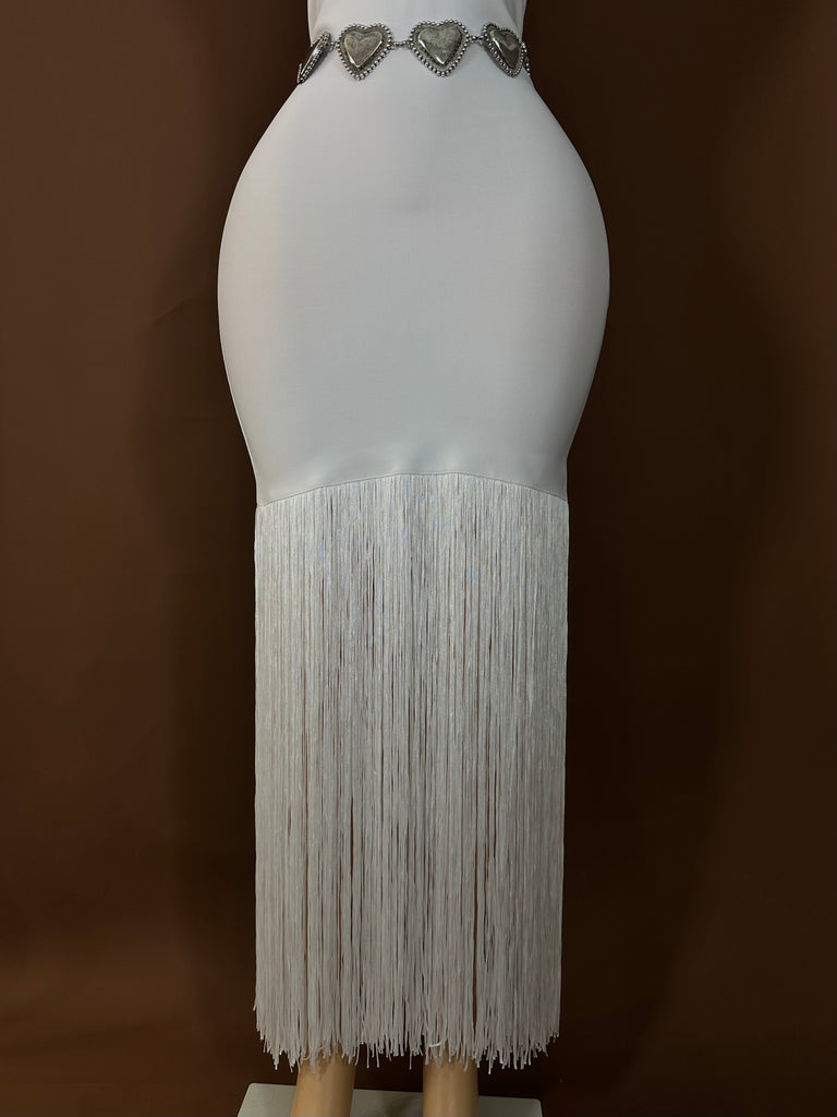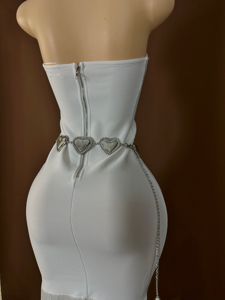 Elevate your style with the Heaven Sent fringe dress. The back zipper and stretch fabric ensure a comfortable fit, while the unique fringe detailing adds a touch of glamour. Made with thick, quality fabric, this dress is a must-have.