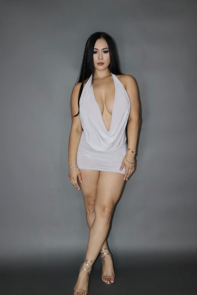 The comfiest and stretchiest dress! Comes with open back and halter top detail. Very eye catching, and sexy!