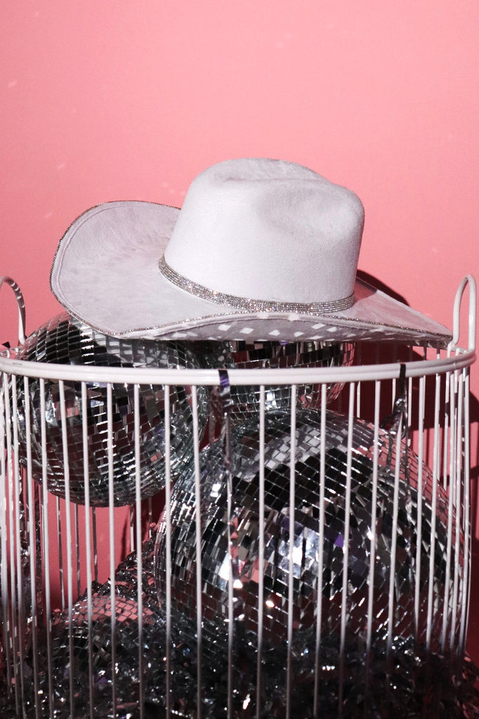 The cutest suede cowgirl hat with hand customized rhinestone detail. Hat comes with band to fit head just right!